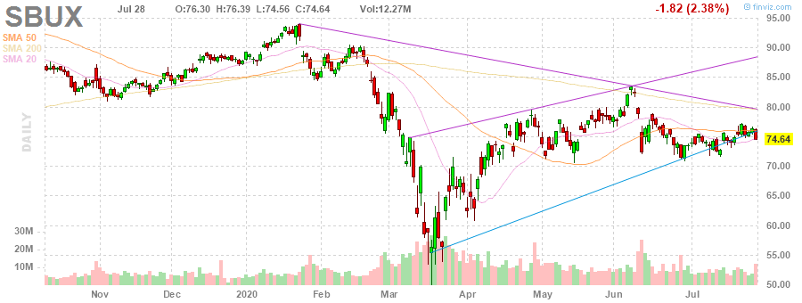 Starbucks Corporation, NASDAQ | SBUX | 78.48 | 3.84(5.14%) | 102945 |