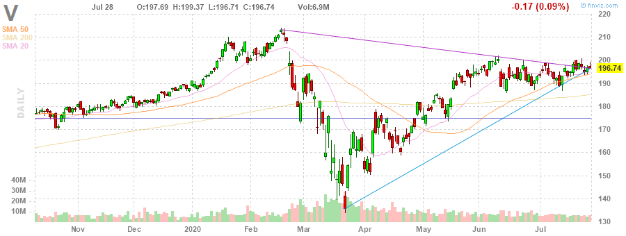 V fell to $194.00 (-1.39%) in pre-market trading.