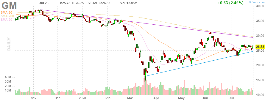 General Motors (GM) reported Q2 FY 2020 loss of $0.50 per share (versus earnings of $1.64 per share in Q2 FY 2019), better than analysts’ consensus estimate of -$1.76 per share.