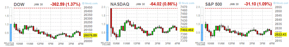 Major US stock indexes finished the session in negative territory, while the Dow Jones Industrial Average and S & P indexes fell by more than 1%, as bond yields increased and companies' shares in the healthcare sector declined.