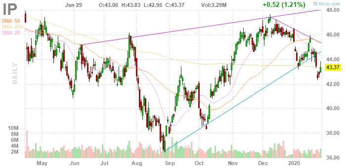 IP fell to $42.80 (-1.31%) in pre-market trading.