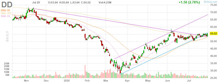 E. I. du Pont de Nemours and Co | DD | 54.99 | -0.23(-0.42%) | 5393 |