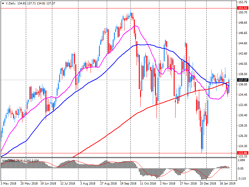V fell to $135.00 (-1.89%) in pre-market trading.