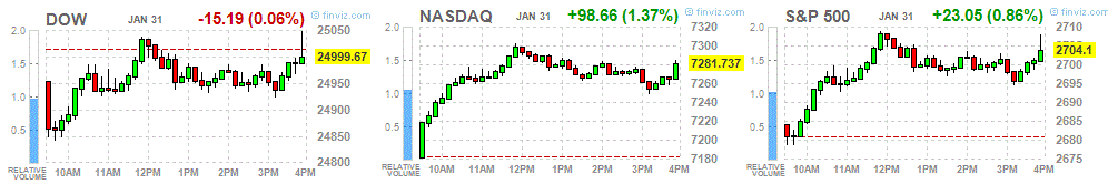Most of the components of DOW recorded an increase (19 of 30). The top gainers were Johnson & Johnson (JNJ, + 2.51%). The outsider was DowDuPont Inc. (DWDP, -9.23%).