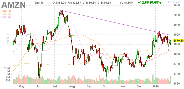 AMZN rose to $2,030.00 (+8.52%) in pre-market trading.