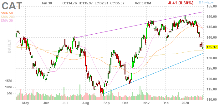 CAT fell to $133.84 (-1.13%) in pre-market trading.