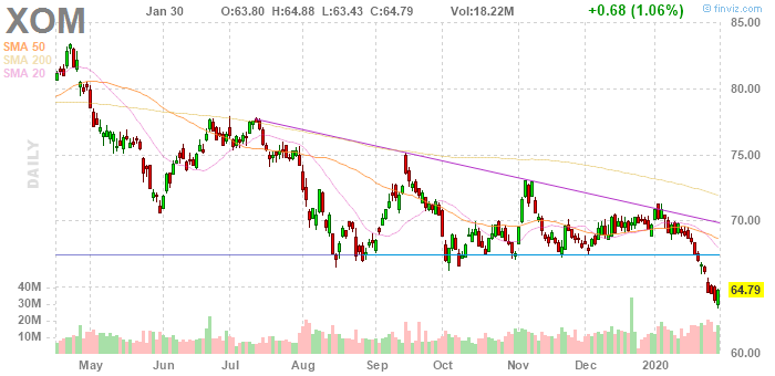 XOM fell to $64.10 (-1.06%) in pre-market trading.
