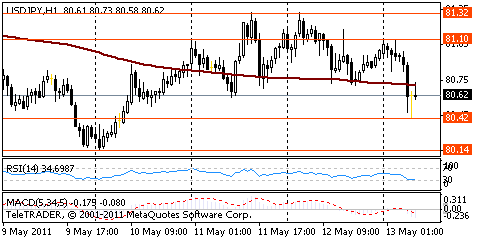 USD/JPY: пара торговалась в рамках Y80,70-Y81,30.