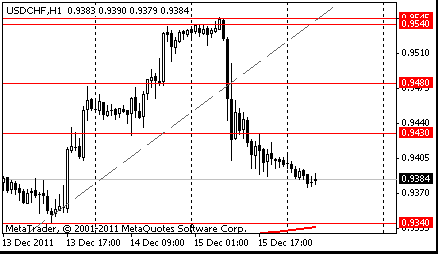 Сопротивление 1: Chf0.9430 (максимум американской сессии 15 декабря)