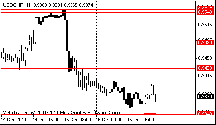 Сопротивление 1: Chf0.9430 (максимум американской сессии 15 декабря)