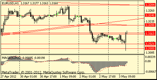 В фокусе участников рынка находятся также завтрашние данные по рынку труда США. Прогнозируется, что по итогам апреля в несельскохозяйственных отраслях экономики США будет создано 160 тыс новых рабочих мест против 120 тыс в марте. Уровень безработицы, как ожидается, останется на отметке 8,2%.