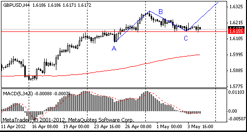 Пара на 4-х часовом временном периоде формирует фигуру теханализа ABCD, что указывает на возможность роста в область $1,6375.