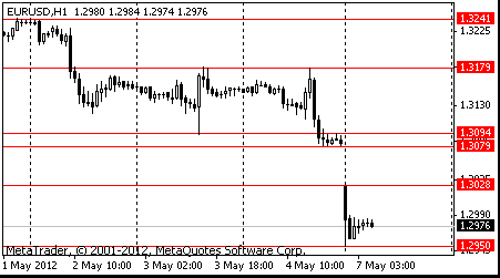 Курс евро упал к трехмесячному минимуму после того, как новым президентом Франции стал социалист Франсуа Олланд. Во втором туре президентских выборов 6 мая он опередил действующего президента Николя Саркози, набрав от 52 до 53,3 процента голосов. Аналитики ожидают, что результаты выборов во Франции окажут прямое влияние на политическое будущего всего Евросоюза. В частности, Франсуа Олланд неоднократно заявлял о планах пересмотра фискального пакта, заключенного 25 странами ЕС по инициативе канцлера ФРГ Ангелы Меркель. Также давление на евро оказали результаты выборов в Греции. Две крупнейшие греческие партии - консервативная "Новая демократия" и социалистическая "ПАСОК" - потерпели, согласно данным опросов избирателей, поражение на парламентских выборах в Греции, значительно ухудшив свои результаты по сравнению с прошлыми выборами. "Новая демократия" набирает от 20,5 до 24 процентов голосов, "ПАСОК" - от 13 до 17. Крупнейшей оппозиционной партией в стране впервые может стать Коалиция радикальных левых сил (СИРИЗА), набравшая около 15 процентов, что примерно вчетверо лучше ее результата на прошлых выборах. Кроме того, впервые в парламент проходит греческая националистическая партия "Хриси Авги" ("Золотой рассвет"), известная своими расистскими и ксенофобскими заявлениями. Она может рассчитывать на 6-7 процентов голосов.