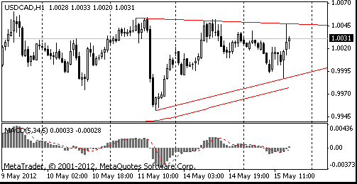 Учитывая, что среднесрочный восходящий тренд остается в силе, более высокими будут шансы на прорыв верхней границы сформировавшегося треугольника, которая в данный момент ограничивает рост пары в области C$1,0050.