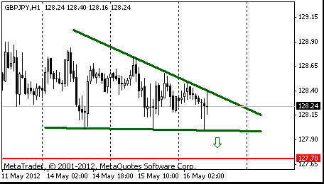 На часовом графике пара GBP/JPY формирует фигуру “нисходящий треугольник”: