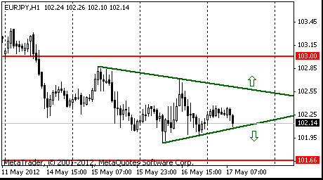 В случае закрепления пары выше уровня сопротивления фигуры, возможен рост к психологическому уровню Y103.00.
