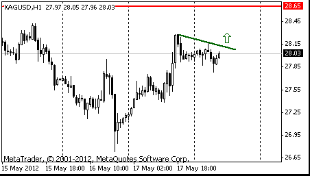 В случае закрепления пары выше уровня сопротивления фигуры, возможен рост к следующему целевому уровню на $28.65 (123.6% $26.75-$28.30).