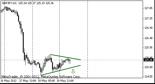 На часовом графике пара GBP/JPY формирует фигуру “вымпел”: