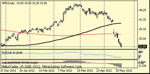 СЕО американского банка JPMorgan Chase Джейми Даймон объявил о приостановке программы обратного выкупа акций в связи с получением $2-миллиардного убытка. На фоне этой новости акции JPMorgan (JPM) просели на 2,9%.