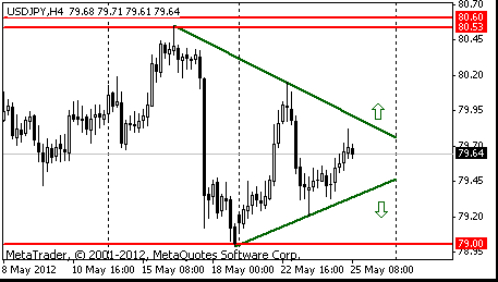 Если же пара упадет ниже поддержки фигуры, то возможно снижение к минимуму 18 мая Y79.00.