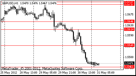 Сопротивление 1: $1.5550 (минимум европейской сессии 30 мая)
