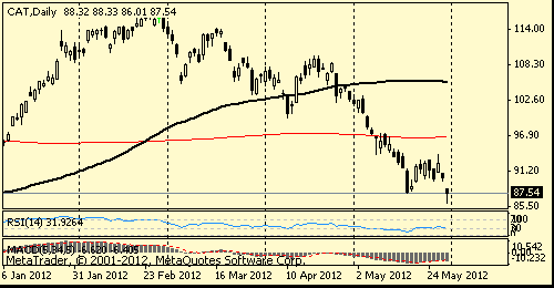 Рыночная капитализация производителя оборудования для горнодобывающей отрасли Joy Global снизилась на 5,4% после того, как компания заявила, что в течение ближайших нескольких кварталов выручка покажет практически нулевую динамику, а темпы роста объема заказов замедлятся. На данных новостях крупнейший в стране представитель отрасли Caterpillar (САТ) убавил из своего актива 2,8%.
