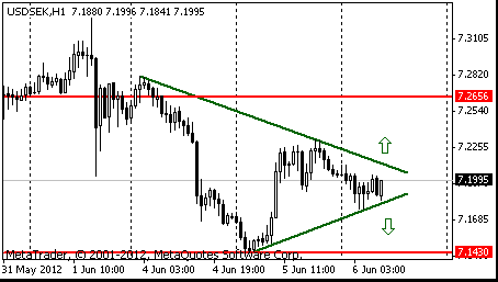 На часовом графике пара USD/SEK формирует фигуру “треугольник”: