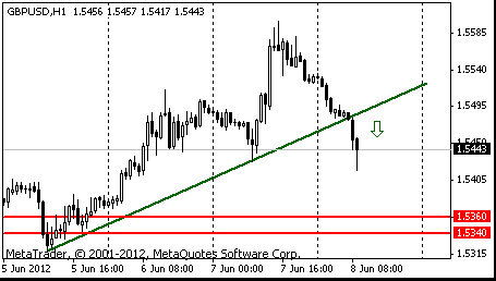 На данном этапе возможно повторное тестирование линии поддержки с последующим снижением пары к $1.5340/60 (область минимумов 31 мая и 4 июня). Также стоит отметить, что на крупных временных интервалах сохраняется медвежий тренд.