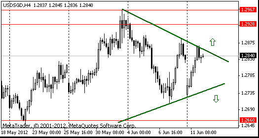 На четырехчасовом графике пара USD/SGD формирует фигуру “треугольник”: