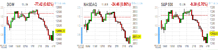 Фондовые индексы США закончили день в «красной» зоне, так как беспокойство инвесторов усилилось в преддверии греческих выборов.