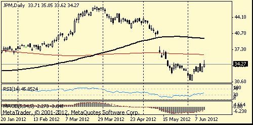 Акции JPMorgan Chase & Co (JPM) прибавили 1,6% - глава банка Джейми Даймон сегодня выступал перед банковским комитетом Сената по поводу понесенных $2-миллиардных потерь от трейдинговых операций. Банкир признал свои слова о "буре в стакане воды", сказанные на эту тему в апреле, "глубочайшим заблуждением" и сообщил, что банк может взыскать деньги с топ-менеджеров, ответственных за столь крупные потери.