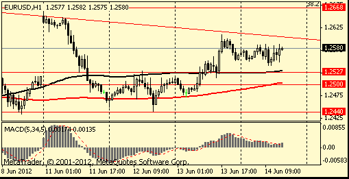 В данный пара консолидируется в области сессионного максимума $1,2580. В данной области также проходит линия сопротивления от 21 мая.