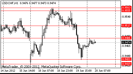 Сопротивление 2: Chf0.9515 (минимум азиатской сессии 19 июня)