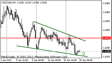 В настоящий момент пара торгуется в области линии поддержки. Можно ожидать роста к линии сопротивления - C$1.0260.