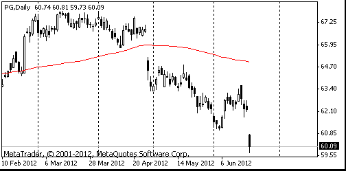 По аналогичному поводу на 3,1% отступают бумаги Procter & Gamble (PG) - компания урезала свои ожидания по прибыли и выручки за квартал с окончанием 30 июня. Стоит отметить, что это уже второе понижение квартальных прогнозов P&G за последние 2 месяца.