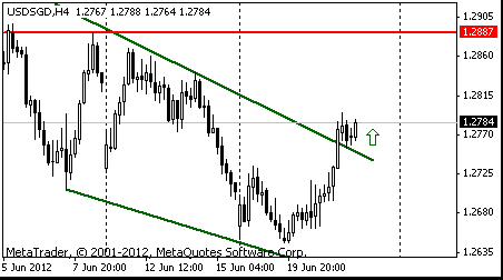Если пара продолжит свое восходящее движение, то следующая цель к которой она будет стремится - S$1.2885 (максимум 8 июня). Далее возможен рост к S$1.2970 (июньский максимум). Также стоит отметить, что на дневном графике продолжается бычий тренд.