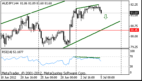 На четырехчасовом графике пара AUD/JPY находится в восходящем канале: