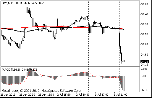 На текущий момент акции JPM упали до уровня $34.28 (-4.34%).