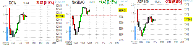 Начав сессию снижением основные фондовые индексы США позже сумели компенсировать часть понесенных потерь, однако полностью перекрыть их пока не смогли.