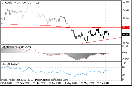 Акции UTX на премаркете выросли до уровня $74.56 (+0.63%).