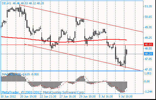 Акции DD отреагировали ростом, показав сессионный максимум в области $48,80. В данный момент акции DD котируются по $48.20 (+1.47%).