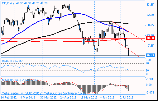 Давление на акции компании оказывает снижение их рейтинг аналитиками Macquarie, а также публикация департаментом сельского хозяйства США (USDA) отчета по оценкам спроса и предложения сельскохозяйственного сырья в мире за июль.