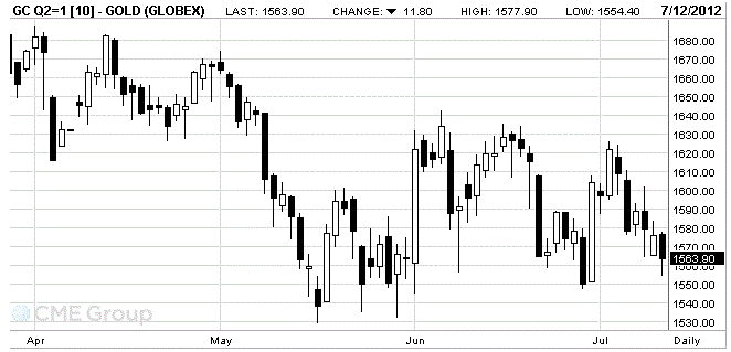 Августовский фьючерс на золото на COMEX сегодня снизился на 10,9$ и сейчас составляет 1564.8 доллара за унцию.