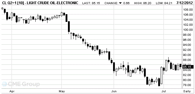 Стоимость августовских фьючерсов на американскую легкую нефть марки WTI (Light Sweet Crude Oil) на NYMEX снизилась на 0.62$ и составляет сейчас $85,19 за баррель.