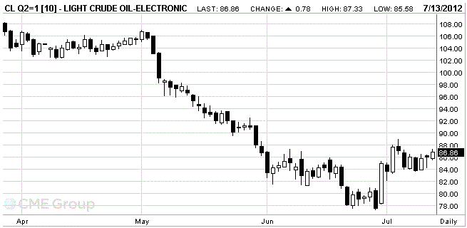Стоимость августовских фьючерсов на американскую легкую нефть марки WTI (Light Sweet Crude Oil) на NYMEX выросла 0.85% на и составляет сейчас $86,93 за баррель.