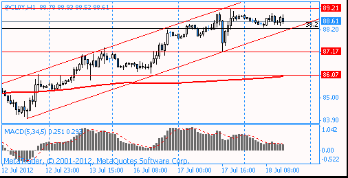 Августовские нефтяные фьючерсы Nymex WTI в данный момент котируются по $88.61 за баррель (-0,41%).