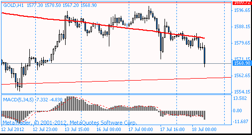 Цены на золото снизились на 1.25% до уровня $1568.90 за унцию.