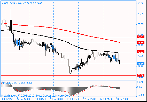 Пара USD/JPY снизилась, обновив при это минимальное значение дня. Ближайшим уровнем поддержки является значение Y78.70, на котором находится минимум 16 июля.