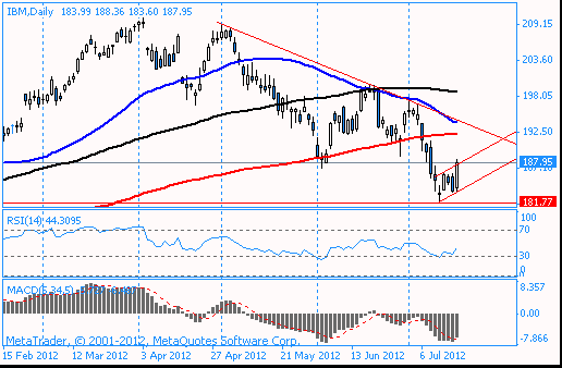 Акции IBM в данный момент торгуются по $187,95 (+2.30%).