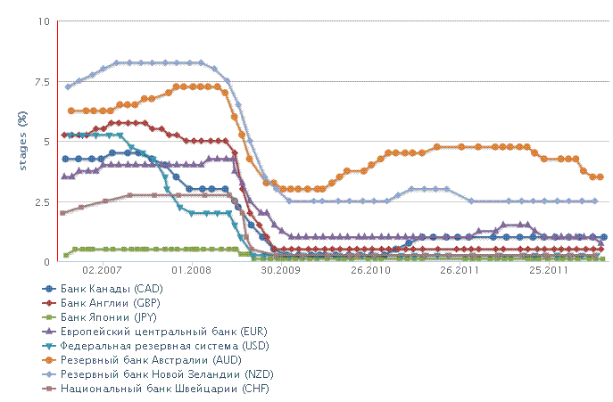 - добавлено визуальное отображение текущих значений основных учетных ставок ведущих центральных банков мира (столбиковая диаграмма*);